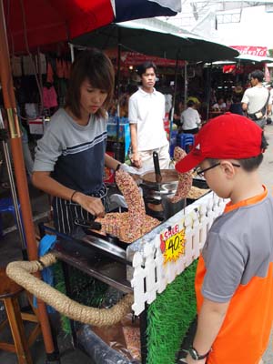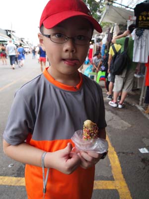 A bit the waste money cause he only ended eating the chocolate crust. We walked a bit more and left JJ Market. Going back to hotel before going to MBK next.