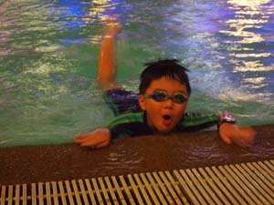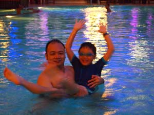 Having fun at the hotel pool.