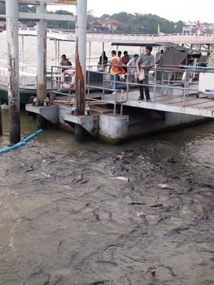 Saw a man feeding the fishes....they were big!!!