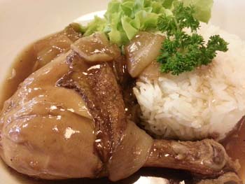 Mine. Chicken with brown sauce and rice. Tender and fresh.