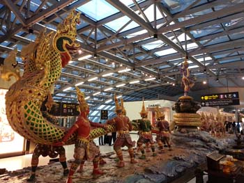 The Statues depicting the "Churning of the Ocean of Milk" once you clear immigrations at the International Check-in area. My favourite.