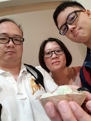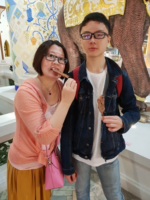 Aiken getting his Xmas (yes Xmas) exchange gift for his schoolmate.