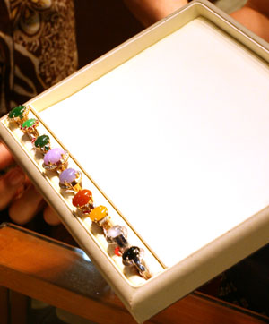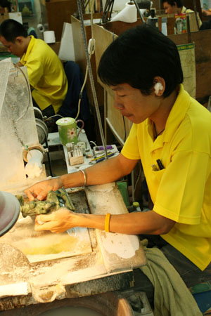 The staff showing us the various colors of jade.