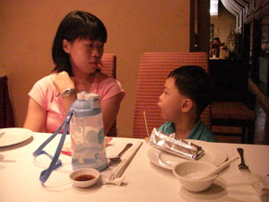 We decided to try the food at the Chinese Restaurant (Sunflower Chinese Restaurant) at the top floor of the hotel we are staying in before going to explore the night bazaar again. The ambience and the view from the restaurant was fantastic. Here's Aiken enjoying his Pokey...haha..