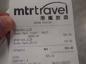 My receipt for the Ocean Park tickets. Saved HK$75 (S$13).