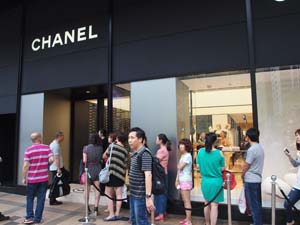 Interesting sight for me....ppl queuing to go into a luxury outlet....most of these are from China....wonder where they get all their $$$$$... Spend money like drink water...
