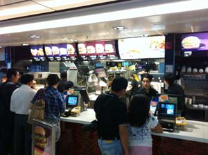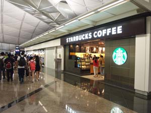 It was a first for me....to see a food outlet (Starbucks) located just beside the departure gate..ppl are buying coffee to bring onboard too.