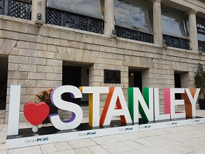 Walking along the Stanley Promenade.