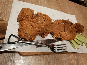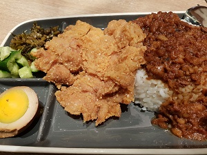 My turn to try the chicken cutlet minced pork rice. Nice.
