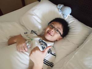 Woke up about 9.30am today and decided to walk around to look for breakfast as it was not included in the hotel stay. Here's Aiken all ready for Disneyland...he is all dressed up and just hiding under the blanklets.