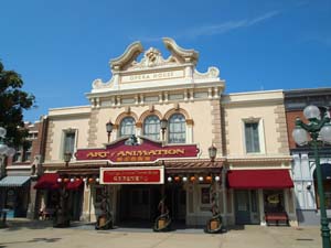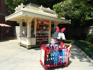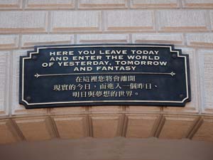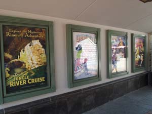 A short walkway linking the entrance to Disneyland featuring the available rides in the park.