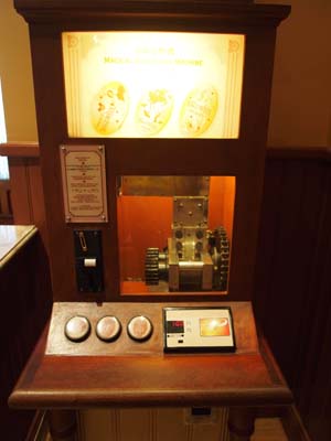 A coin press machine which allows you to choose different designs for your coins. You can also make payment using your Octopus card.