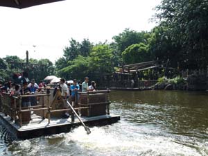 Taking the raft over to Tarzan's Treehouse. Damn short distance can....