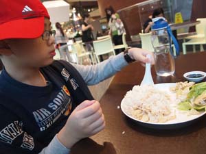 Aiken got his favorite chicken rice....from Singapore....Sergeant Chicken Rice...