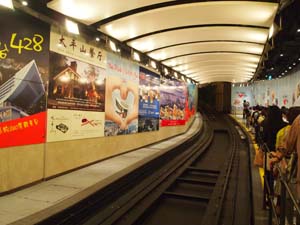 Waiting for the Peak Tram to arrive.