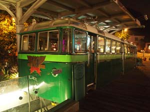Exhibit of a tram at the Peak. Afterwhich, we went to wait for the tram ride back. There was already quite a long queue forming.