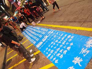Display of calligraphy skills not using a pen but powder.