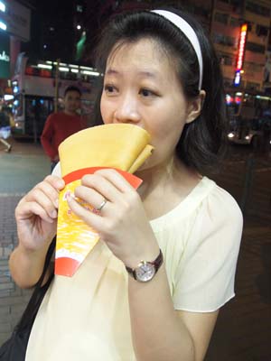 Wife and Aiken had some crepes which tasted quite good. That's it for Day 3 of our trip. Tomorrow, we are going to Wong Tai Sin and the Jade Market.