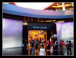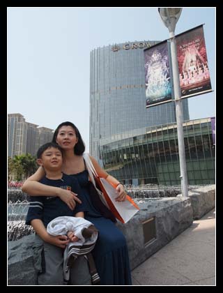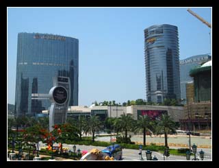 Here we are, at the "City of Dreams". There is a huge water feature surrounding the building which I believe is for fengshui purpose. Bad for gamblers but good for the casino.