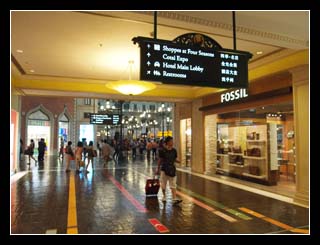 Signages to ensure you will never get lost in the maze of shopping. If I am not wrong, the colored lines on the floor leads u back to the respective hotels linked to the Grand Canal Shoppes.