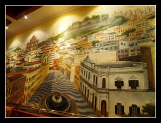 There is this beautiful wall painting of the Senado Square area on the wall behind us.