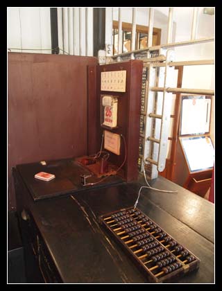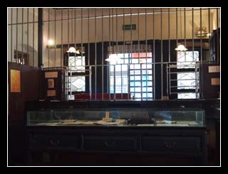 The working area where the staff assess the value of the item and to stamp the necessary documents.