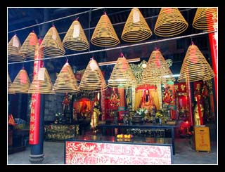 This temple was built in 1750 and is dedicated to the God of War and Riches, Kwan Tai, who sits on the altar flanked by images of his son and his standard bearer.