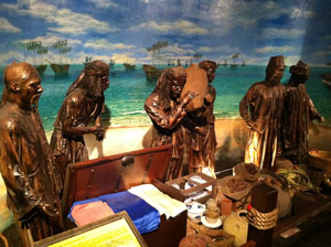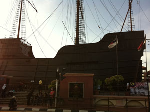 The structure of the ship is actually a replica built according to the former Portuguese ship named “Flor De La Mar”. If I remember correctly, admission fees is RM3 for adults and RM1 for children. Nothing much inside the museum though. No shoes are allowed in the museum. They will pass you plastic bags for put your shoes in at the ticket counter.