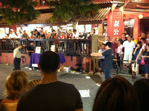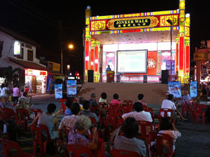 There is this make-shift stage somewhere in the middle of Jonker Street where all the food stalls are. We saw a guy giving a lecture in Malay using Powerpoint