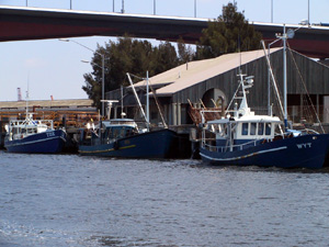 Some boats docked along the Yarra river.