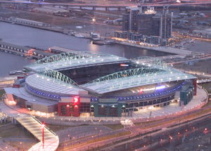 The Colonial Stadium seen from the Melbourne Observation Deck. The special feature of this stadium is that in times of bad weather, the game can still go on. Notice the top of the stadium, it can be closed to enable gameplay to go on.