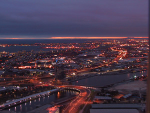 Night view of the Melbourne city from the Observation Deck. Not much cars around, thus unable to have much streaks of lights on the road.