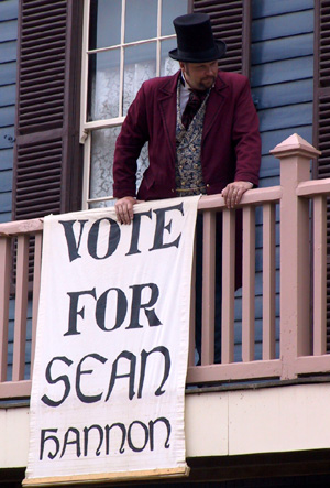 As we were listening to the band's music, out of a sudden, this guy just came out from the second storey and started to shout "Vote for Sean Hannon". Then an interesting drama began. That is how interactive and interesting the place is.