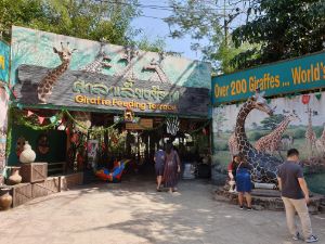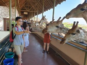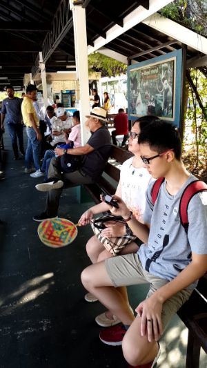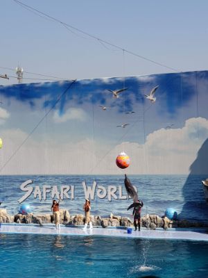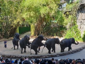 Our guide was able to bring us through all the animal shows happening. Here we are at Eggs World before the elephant show starts next door.