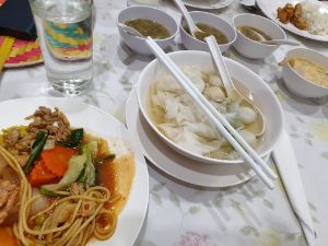 The guide helped us booked the table and took some noodles and green bean soup for us.