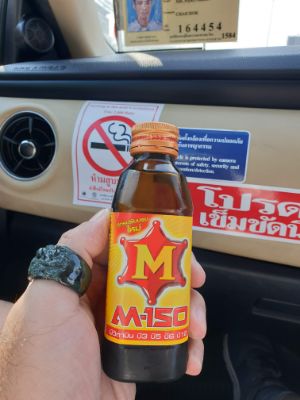 The driver got us some drinks on the way back to the city. This tastes like Red Bull.