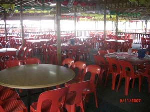 Overall layout of the restaurant, no airconditioning but the place is quite cooling with lots of fans and it is built on the water. Surround the restaurant is quite a few ponds with huge fishes in it. Lunch included fish, shells, crabs, soup, vegetables, prawns and fruits. Not too bad.