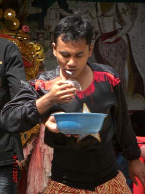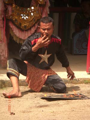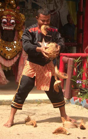 Next, one of the dancers peeling a coconut using bare teeth.