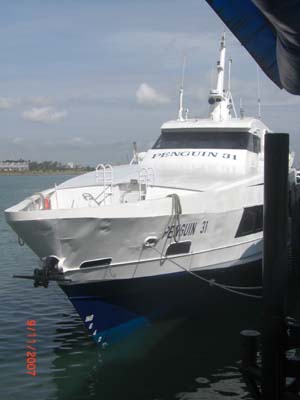 It was an extremely mad rush this morning. We were supposed to reach Harbour Front at 0800hrs to do the boarding and stuff, but due to the morning traffic, we were caught in a jam for quite some time....was quite worried that we might miss the boat. Luckily, we reach on time at 0900hrs and were the last to board the boat, haha..the Penguin 31.