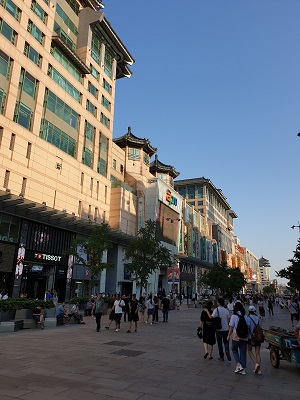 Walking on Wangfujing street. We are about 800m to the main shopping belt along WFJ street.