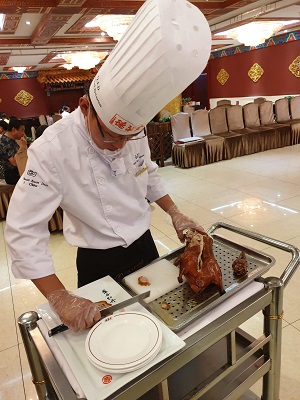 The chef will show you the duck and do the carving beside your table.