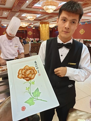 Reason for it being called the Peony duck. Nicely placed on the plate with peony leaves and the duck meat as its flower.