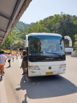 Need to board a shuttle bus to the other "entrance" of the Mutianyu Great Wall. It takes about 5mins or if you want to walk up...it takes 20 to 30 mins of steep slope walking.