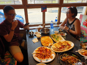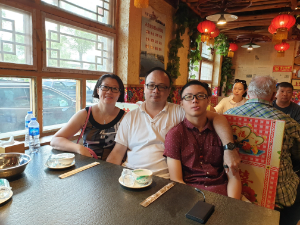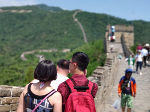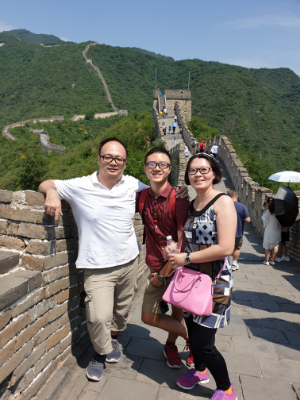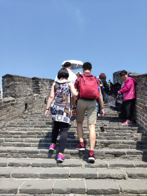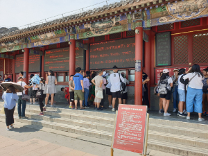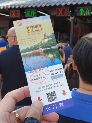 About an hour ride to the Summer Palace. Our guide buying tickets for us.