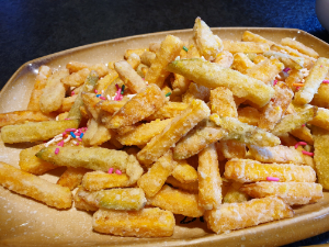 Pumpkin fries with salted egg. Supposed to be nice but they had this weird combo of the rice sprinkles.