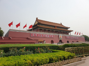 Behind us is the Mausoleum of Mao Zedong. There was an insane long queue for people to go in to pay their respects.