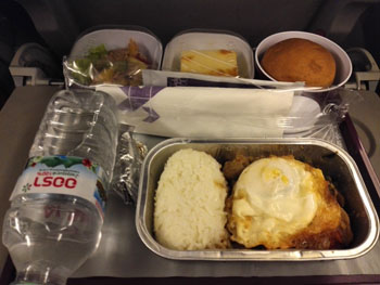 The usual airplane food. Just nice as I was getting hungry. Somehow, the airline arranged for me to sit behind instead of in front with family. Zzz..