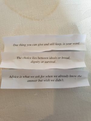 After makan, got fortune cookie and mint chocolates also.