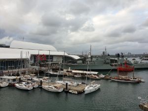 Some navy ship beside the Maritime Museum.