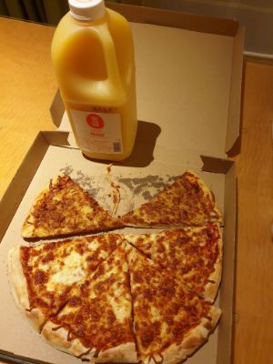 Bought a pizza, orange juice back to the hotel as dinner. Last day tomorrow.